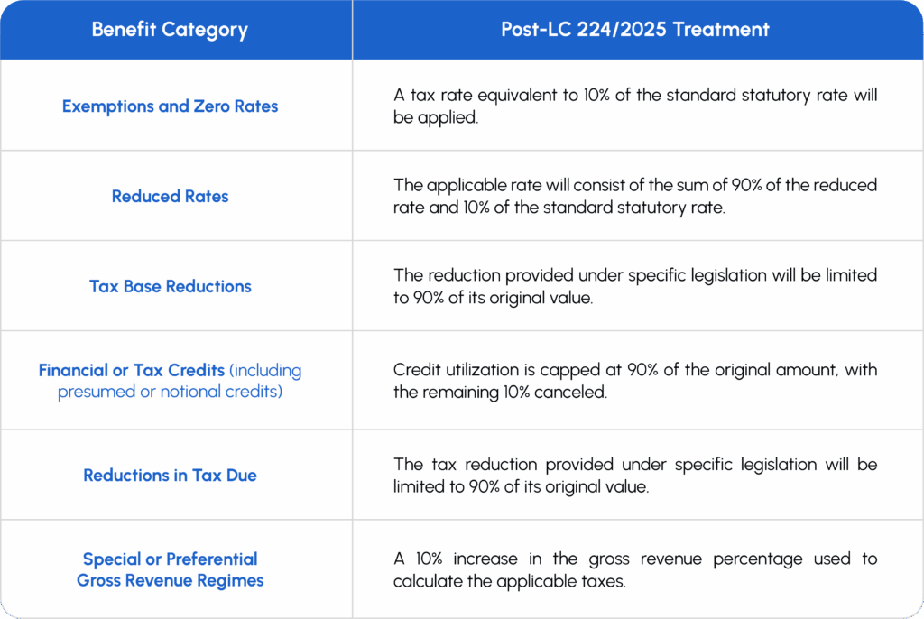 The 10% reduction applies according to the category of each tax benefit, as follows: