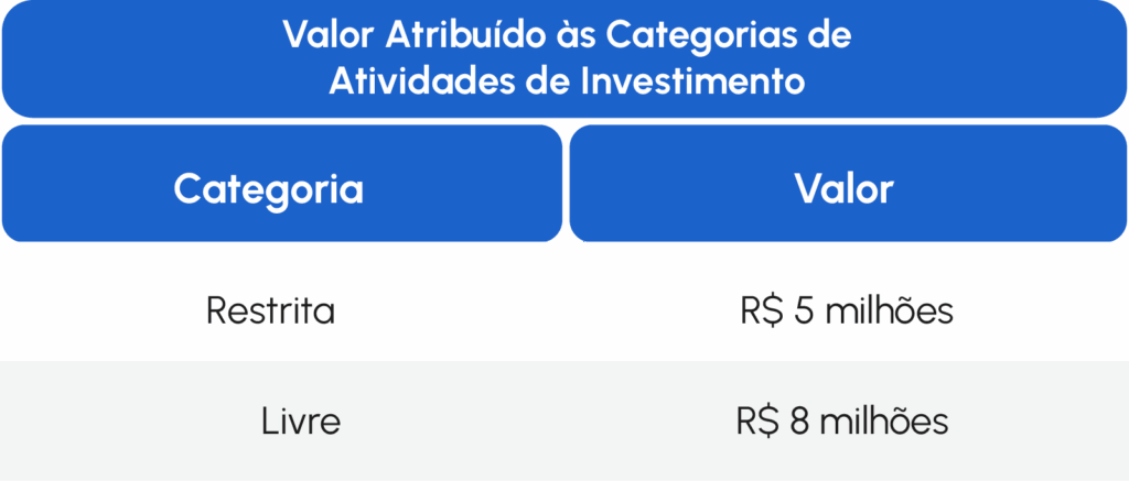 $2 milhões x quantidade de Categorias de Atividades Operacionais¹ + R$5 milhões²³