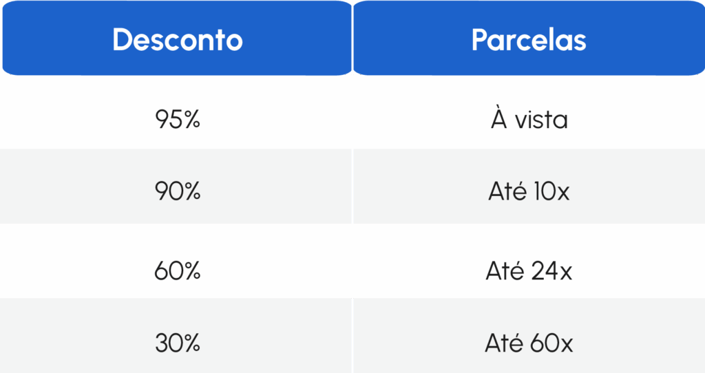 Modalidades de descontos aplicadas sobre multa e juros: